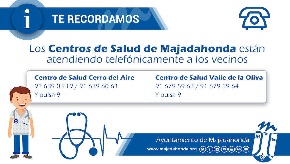 Los Centros de Salud del municipio atenderán telefónicamente a los vecinos de Majadahonda para una mejor comunicación.